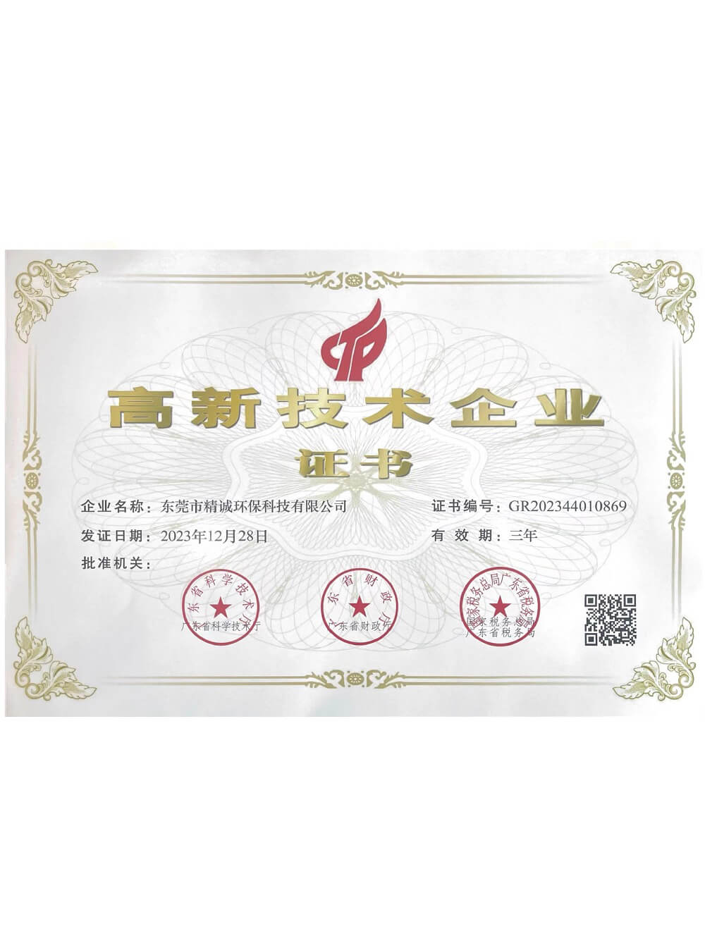 高新技術企業證書
