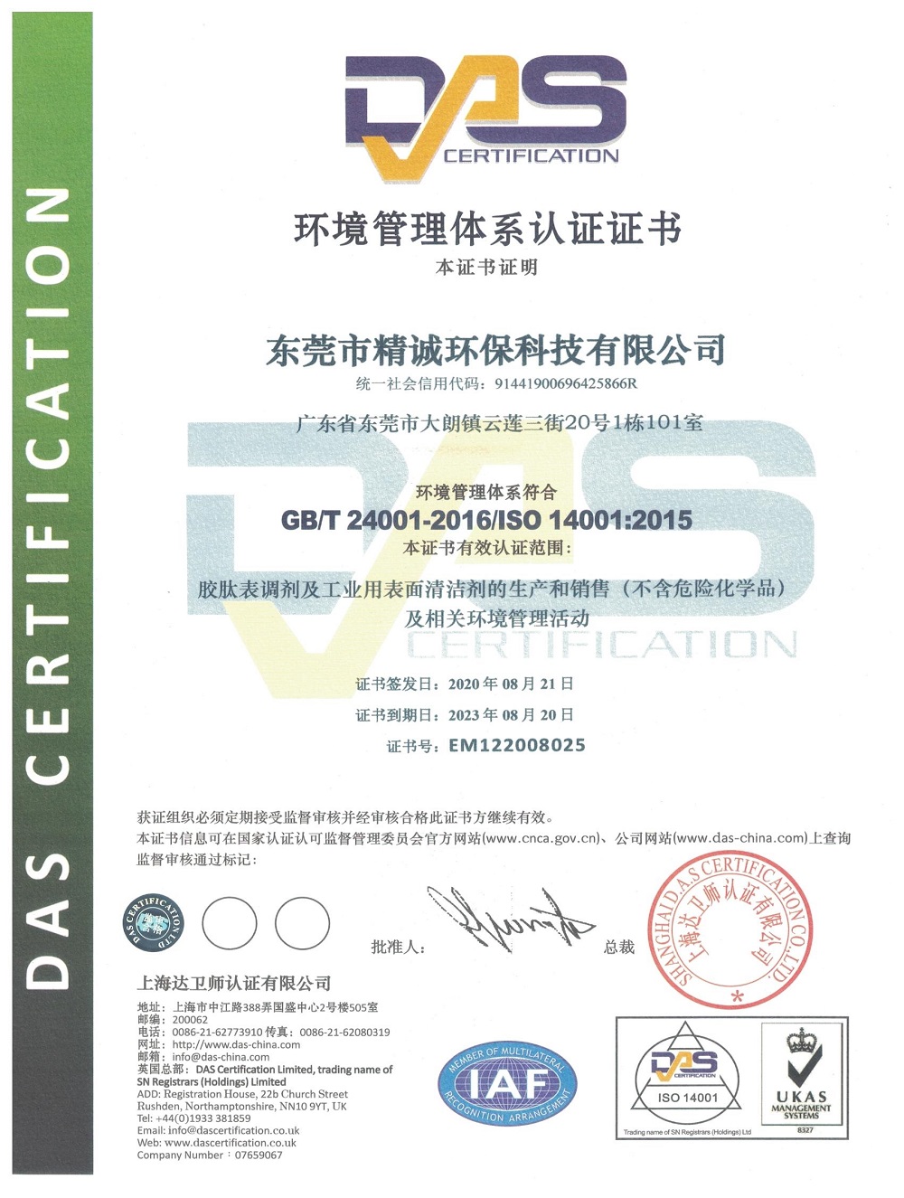 環境管理體系認證證書